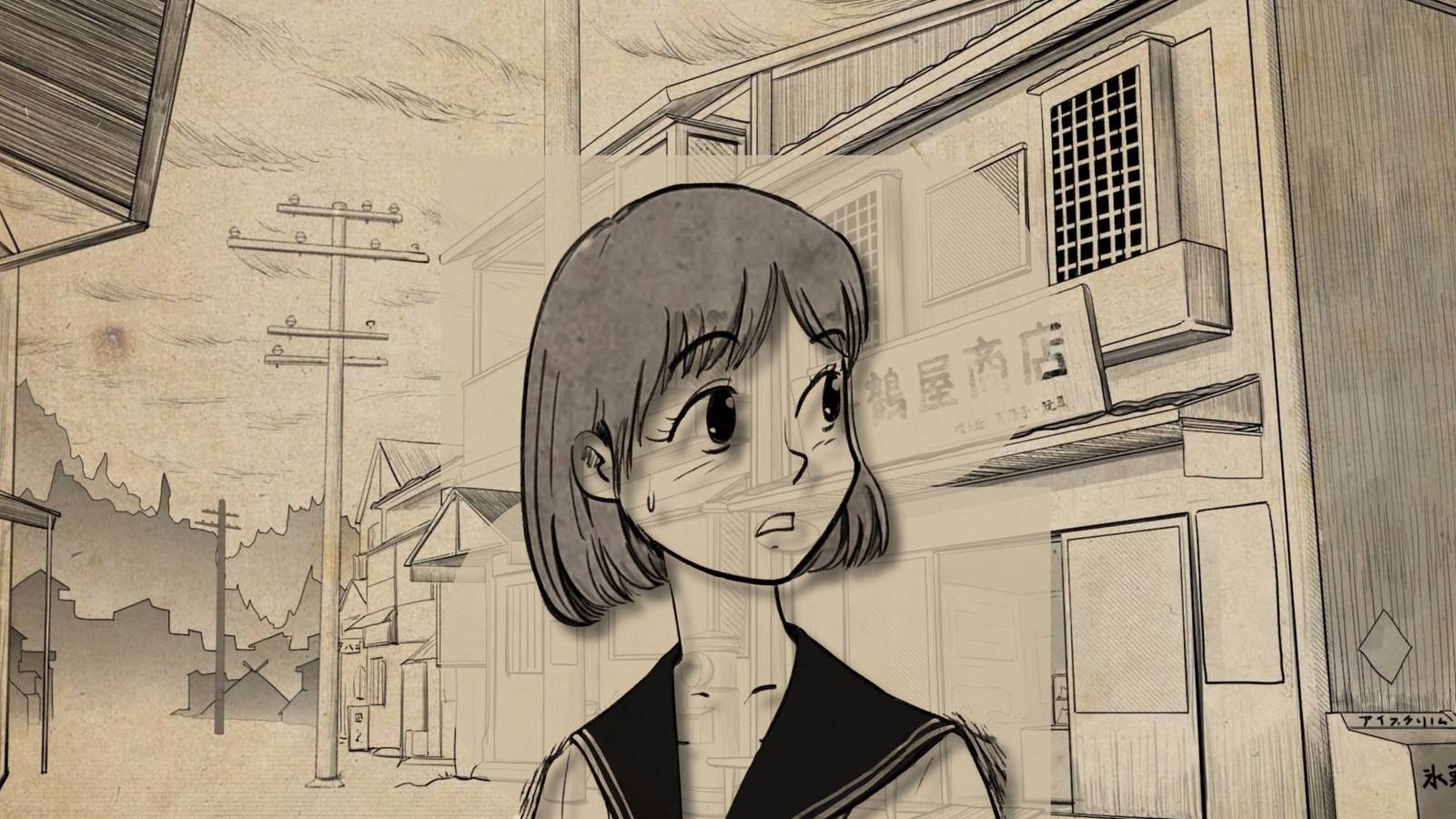 After the shrine path, Hinako will return to Oka and meet with SHU. Go to the south of Rinko's house through the rice fields. Push the wooden logs blocking the entrance and head to the small garden to interact with the first poster of the wall. This plays a short cut scene that shows the UFO flying.
