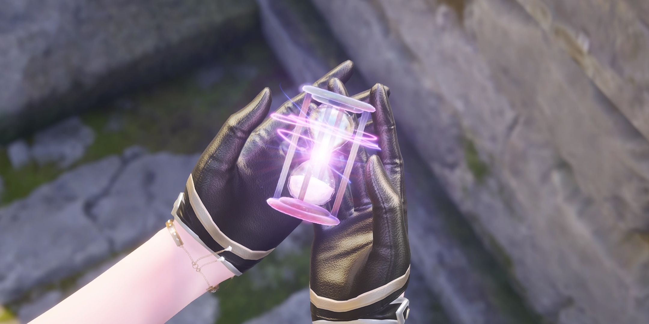 After taking the picture infinity nikkiMomo suggests Nikki take a photo somewhere and leave a snapshot hourglass of herself. Loni takes us to a nearby stone bridge because it has a beautiful view. Open the camera again, take a picture of Nikki, and then press the snapshot button to finish it for other players to see. This completes the rewind through time and space quest.