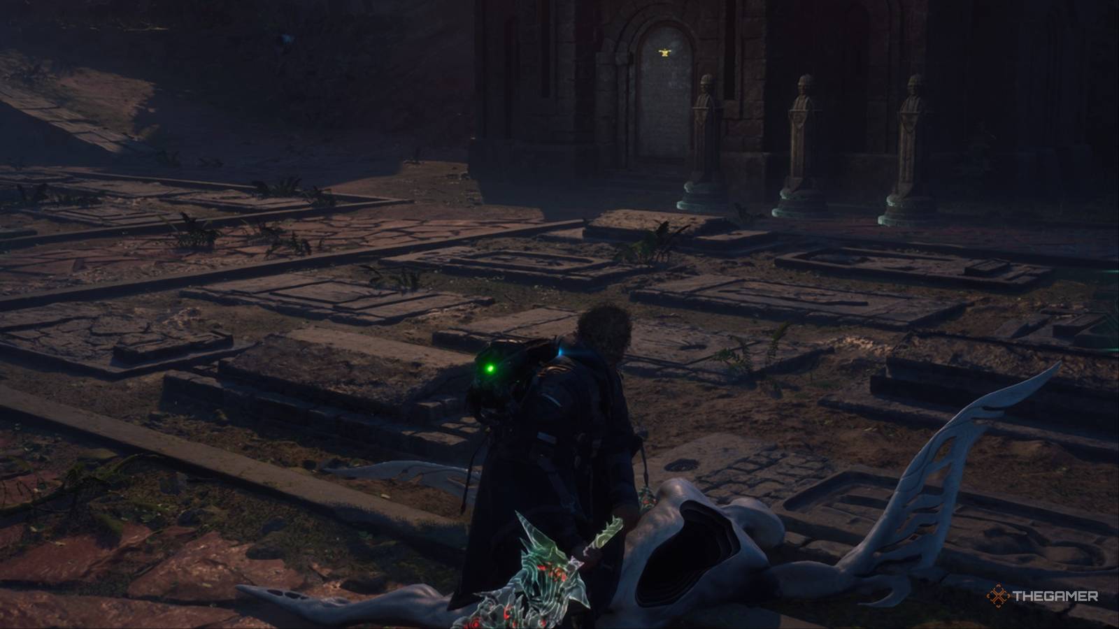 The mausoleum of the problem is not far away. Move south until it reaches the broken fence part It leads to digital. There is a small building and there is a single Colum barium that can unlock. After unlocking, the jar is automatically placed inside.