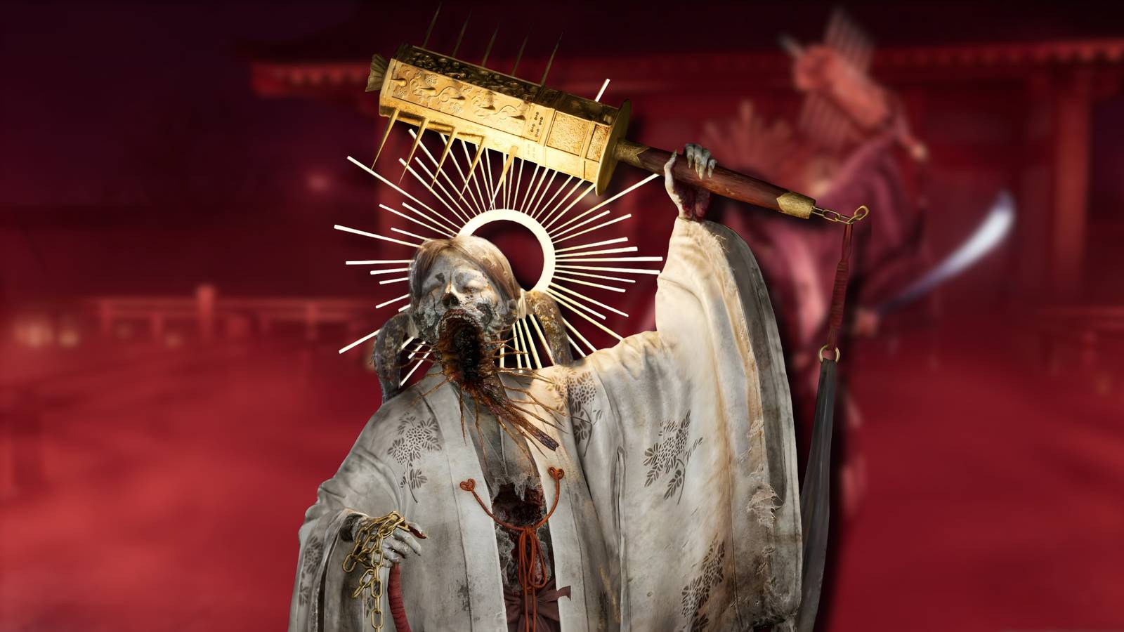 When Sakuko starts an Suzu Bell attack, you need to warn quickly and detect the teleport position within boss Arena. If you find a shining halo ring through the fog, you will quickly rush to her and make a heavy two light attack. To interfere with her Suzbell attacks three times, you need to repeat this. Sakuko can also start small Suzu Bell Attack.